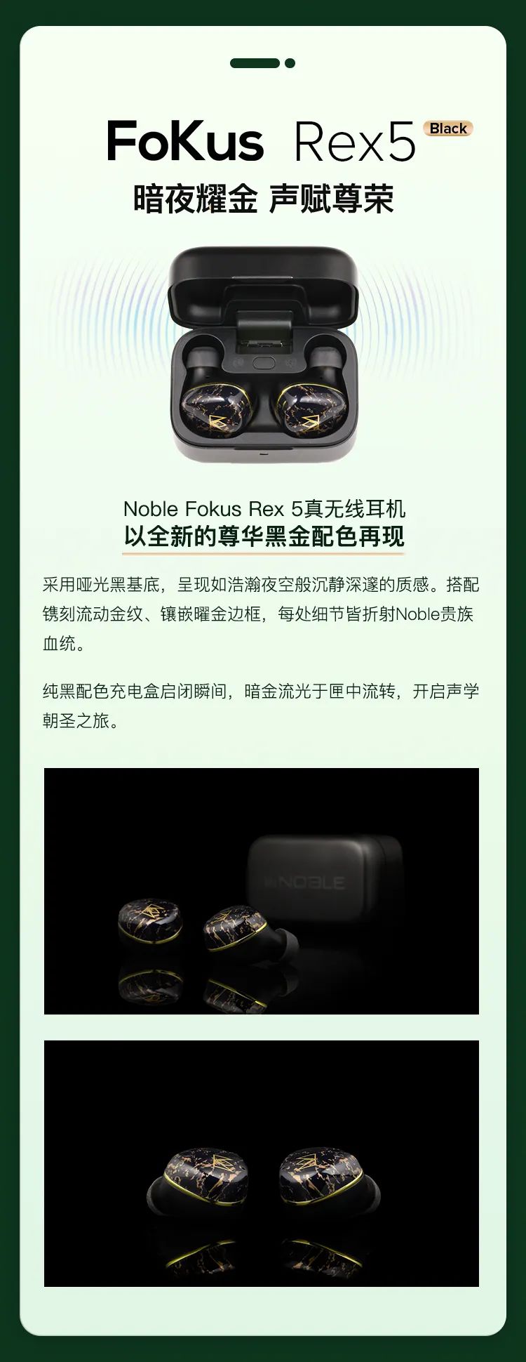 Noble 自推出以來便備受贊譽的真無線耳機 Fokus Rex5 ,如今以全新黑金配色耀目再臨!